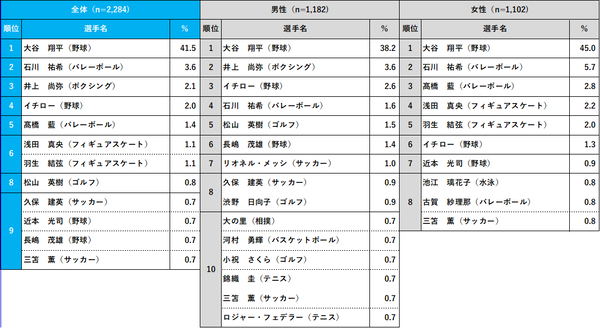 大谷翔平が過去最多得票率41.5%でダントツ1位! 2位 石川祐希、3位 井上尚弥