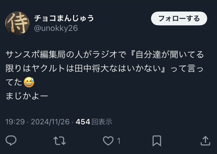 【悲報】ヤクルトも田中将大から撤退wwwww スポンサーリンク 東北楽天ゴールデンイーグルス 2024/11/27 21:35 【悲報】ヤクルトも田中将大から撤退wwwww (出典 【悲報】ヤクルト田中将大撤退w w w w w w w w w w w w w w w w w w w w) 1 それでも動く名無し 警備員[Lv.5][新芽] :2024/11/27(水) 00:30:20.25 ID:jtk27P510 (出典 i.imgur.com) (出典 i.imgur.com) (出典 【悲報】ヤクルト田中将大撤退w w w w w w w w w w w w w w w w w w w w) 続きを読む