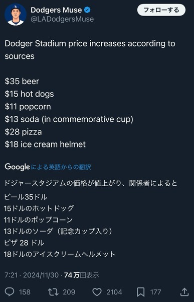 【悲報】球場メシの値上がりヤバい、ビール1杯5300円へ スポンサーリンク 東京ヤクルトスワローズ 2024/12/01 16:03 【悲報】球場メシの値上がりヤバい、ビール1杯5300円へ 1: それでも動く名無し 警備員[Lv.19] 2024/11/30(土) 23:03:41.75 ID:z9y4WJEWd 終わりだよこめの国 https://i.imgur.com/tIpmsF0.jpeg 続きを読む