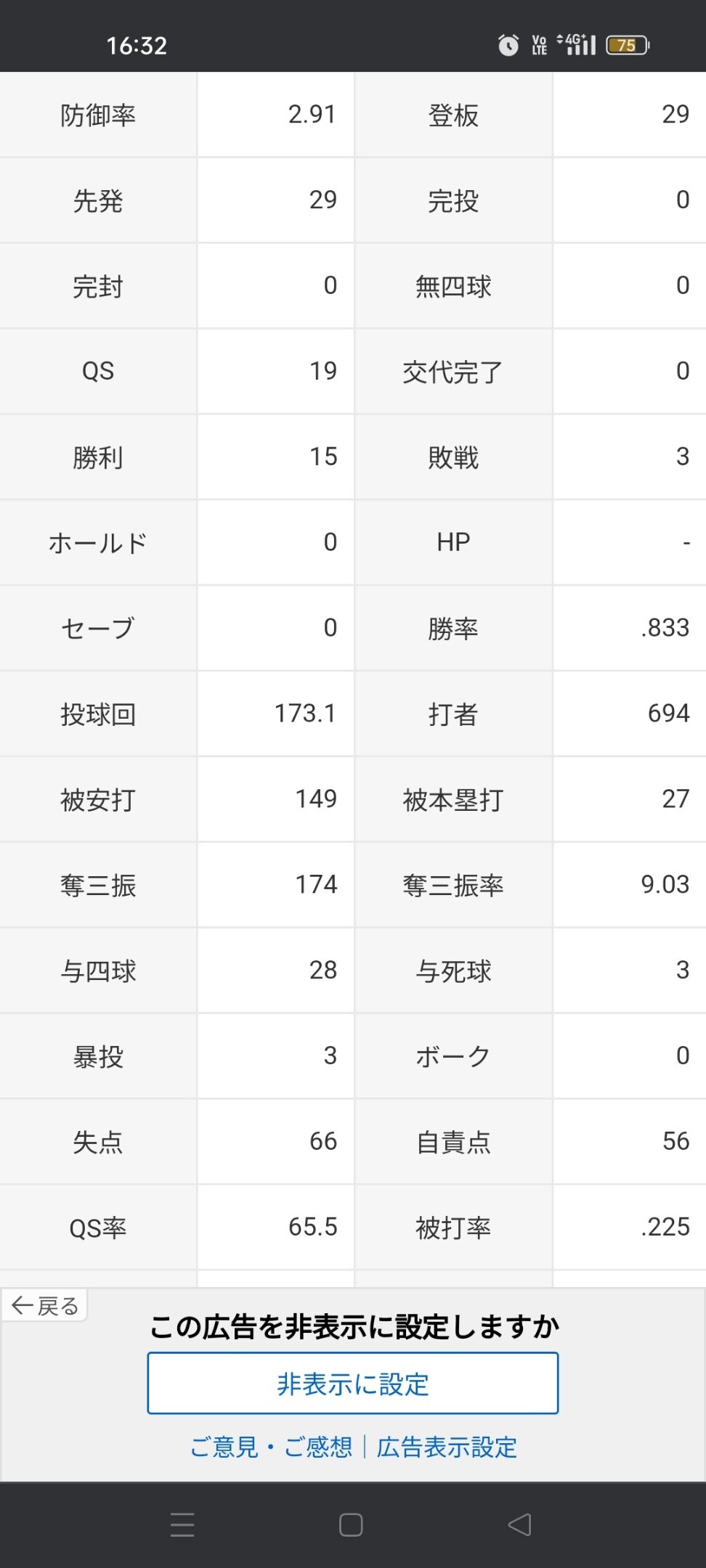 今永昇太(メジャー1年目)「15勝3敗 防御率2.91 whip1.02 投球回173 奪三振率9.03」←これについて