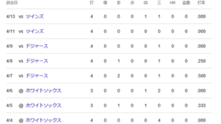 MLB 岡本和真 .213 2本 4打点 OPS.622