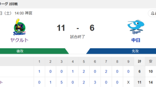 東京ヤクルトスワローズ 【試合結果】ヤクルト11-6中日 打線爆発14安打!サンタナ増田伊藤にHR!