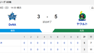 東京ヤクルトスワローズ 【試合結果】ヤクルト5-3横浜DeNA 逆転勝ち開幕3連勝!サンタナ3打点!
