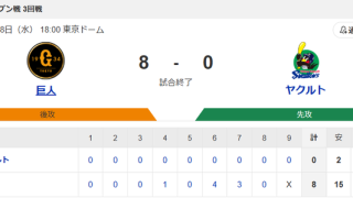 東京ヤクルトスワローズ 【試合結果】ヤクルト0-8巨人 先発奥川5回1失点 田口4失点 拓也3失点