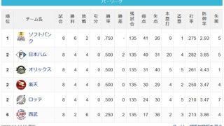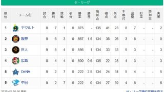 野球その他 【セ順位】ヤ—神–巨-広—–横中【4/5】